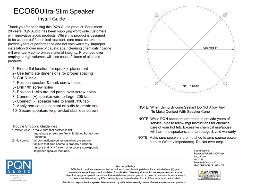 PQN Audio ECO60 6" Waterproof, Ultra-Slim Speaker for RV, Camper, Marine and Outside Weather